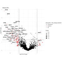 Data Visualization: Employing R's ggplot2 library to create a volcano plot, visualizing the relationship between statistical significance (-Log10 P-value) and magnitude of change (Log2 Fold Change) for each gene, making complex results immediately interpretable.